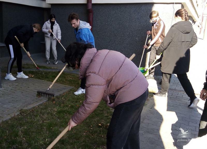 4 ноября студенты ПолесГУ, проживающие в общежитии №5, приняли участие в благоустройстве территории, прилегающей к общежитию.