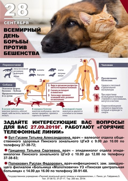 28 СЕНТЯБРЯ 2019 ГОДА – ВСЕМИРНЫЙ ДЕНЬ БОРЬБЫ ПРОТИВ БЕШЕНСТВА
