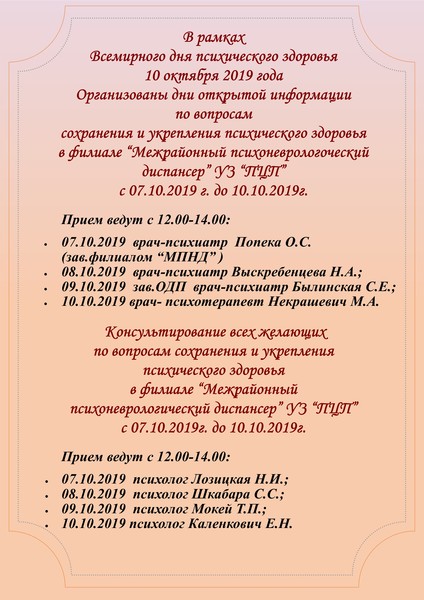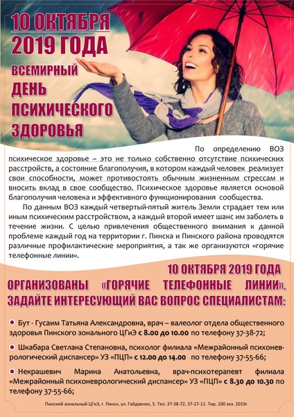 10 ОКТЯБРЯ 2019 ГОДА – ВСЕМИРНЫЙ ДЕНЬ ПСИХИЧЕСКОГО ЗДОРОВЬЯ