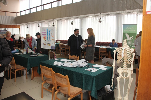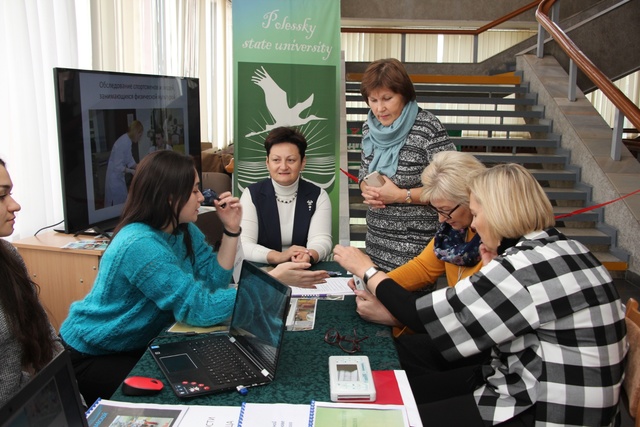 Полесский государственный университет организовал экспозицию "Мода на здоровье". Сотрудники университета и студенты предоставили информацию об имеющихся возможностях в тестировании состояния организма. Были оценены психофизиологические состояния участников ярмарки, а также проведено анкетирование участников с целью оценки риска возникновения различных патологий.