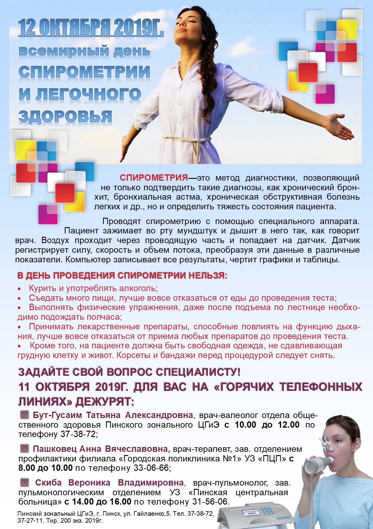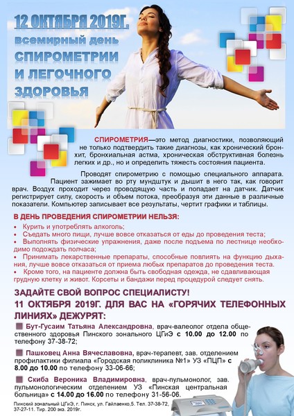 12 ОКТЯБРЯ 2019 ГОДА – ВСЕМИРНЫЙ ДЕНЬ СПИРОМЕТРИИ И ЛЕГОЧНОГО ЗДОРОВЬЯ