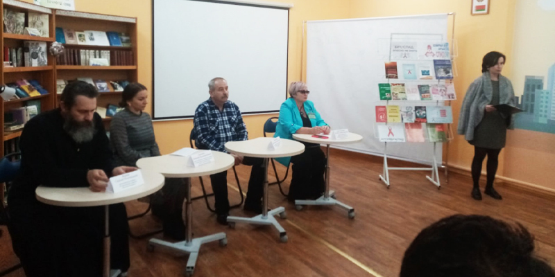 Основная цель мероприятия – повышение осведомленности молодёжи о проблеме ВИЧ/СПИДа, способах распространения и методах профилактики. Перед приглашенными выступили: Бут-Гусаим Татьяна Александровна, врач по медицинской профилактике Пинского зонального центра гигиены и эпидемиологии; Клочко Варвара Владимировна, врач эпидемиолог Пинского зонального центра гигиены и эпидемиологии; Павельчук Александр Алексеевич, председатель БОО «Позитивное движение» в г.Пинске; иерей Сергий Плотницкий, руководитель отдела по социальной защите Пинской Епархии. Вниманию участников круглого стола была представлена книжная выставка «ВИЧ/СПИД: опасно не знать». Такие встречи актуально проводить в профилактических целях, они позволяют взглянуть на проблему с точки зрения профессионалов.