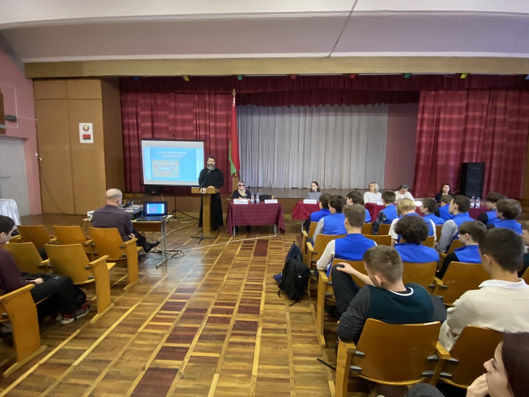 В рамках акции прошел семинар для учащихся и педагогов по формированию здорового образа жизни. Перед учащимися выступили: директор учреждения Кравцова Т.А., врач по медицинской профилактике Пинского зонального ЦГиЭ Бут- Гусаим Т.А., акушерка кабинета психопрофилактической подготовки к родам и школ «Молодой матери» и «Молодого отца» филиала «Женская консультация №3» УЗ «ПМРД» Мисиюк Э.В., психолог филиала «Пинский межрайонный наркологический диспансер» УЗ «ПЦП» Кохнович Е.С., психолог филиала «Пинский межрайонный психоневрологический диспансер» УЗ «ПЦП» Шоломицкая О.Г., врач- педиатр филиала «Детская поликлиника» УЗ «Пинская детская больница» Балук Е.Б., врач- стоматолог филиала «Детская стоматологическая поликлиника» УЗ «ПЦП» Дорогокупец Д.А., главный технолог ОАО «Школьник» Ольшанец Е.М. и священнослужитель, руководитель социального отдела, настоятеля церкви прихода храма Св. муч. Цесаревича Алексия Пинской епархии иерея Сергия Плотницкого.