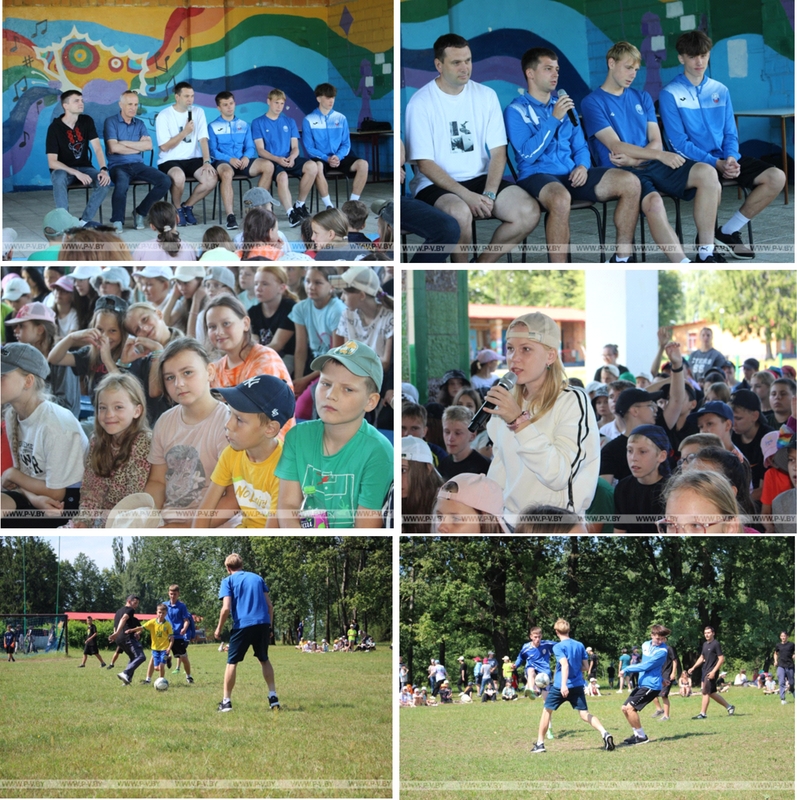 В рамках республиканской акции «Шаг к успеху» у воспитанников лагеря состоялся живой и эмоциональный диалог с тренером СДЮШОР «Волна-Пинск» Андреем Кононовичем, пресс-секретарем футбольного клуба Юрием Сульжицем, а также перспективными футболистами Кириллом Ковалевичем, Станиславом Балуком, Романом Терлецким.